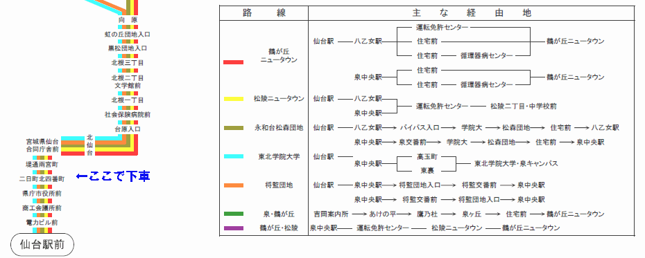 【地下鉄北仙台駅経由 西勝山線 】